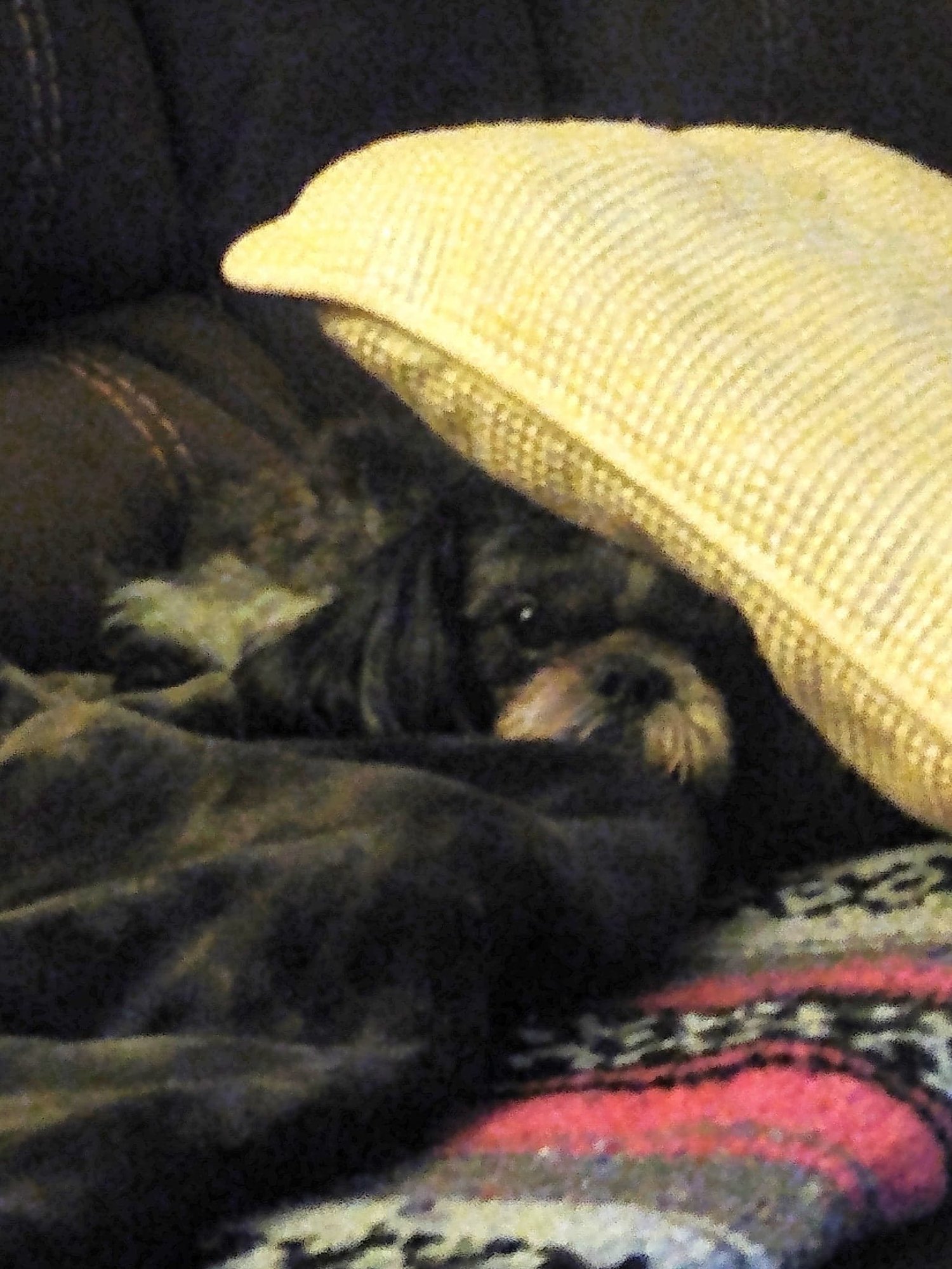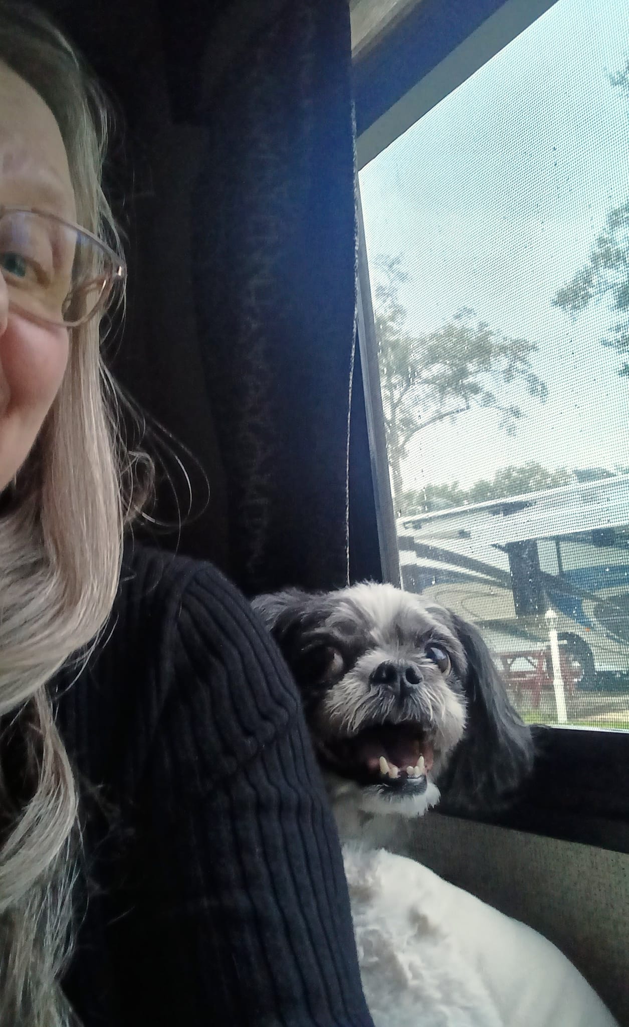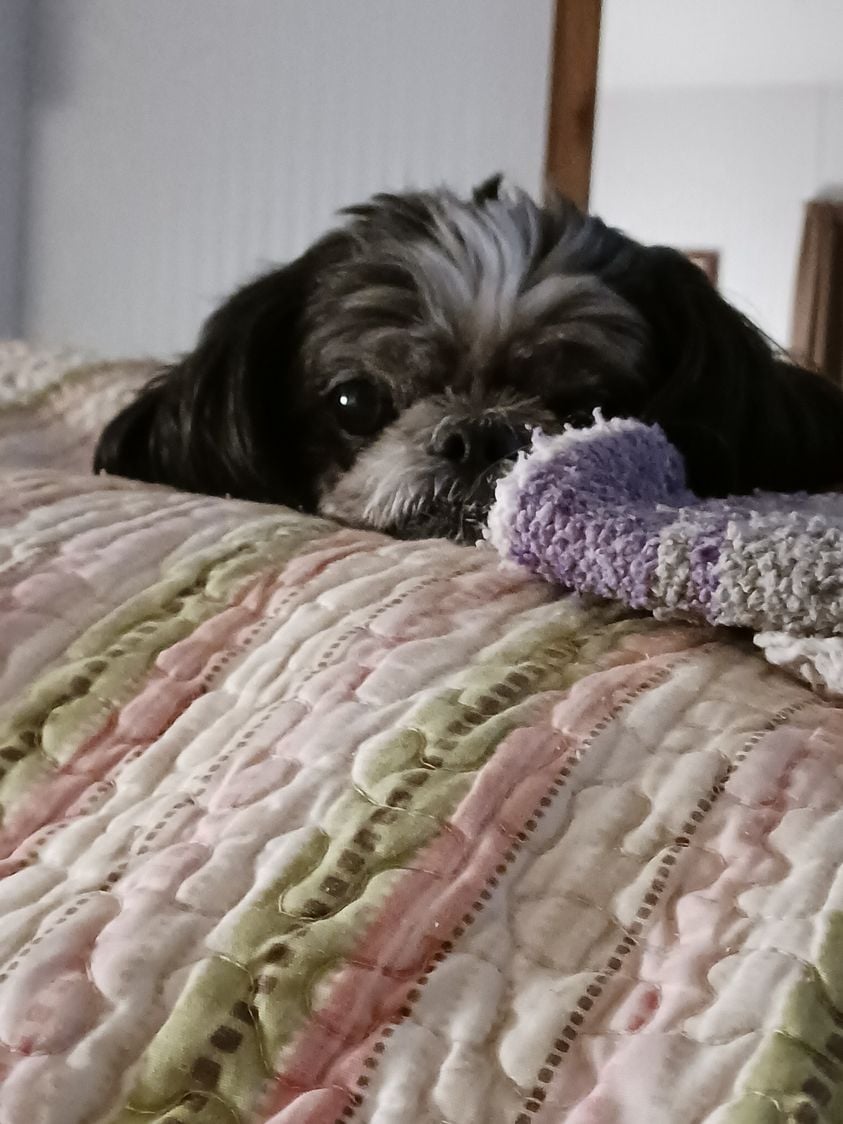 Thunderstorms and fireworks may send her running for cover, but her sweetness never wavers. She’s a devoted mama’s girl, politely tolerating her dad, and prefers her own quiet bubble over socializing. Her heart, however, belongs to four things: mama, pizza, playtime, and belly rubs.