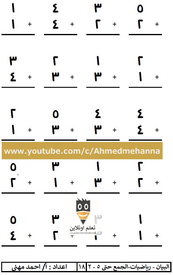 مجموعة الحساب بالابيض و الاسود 105 ورقة arabic worksheets for beginners pdf