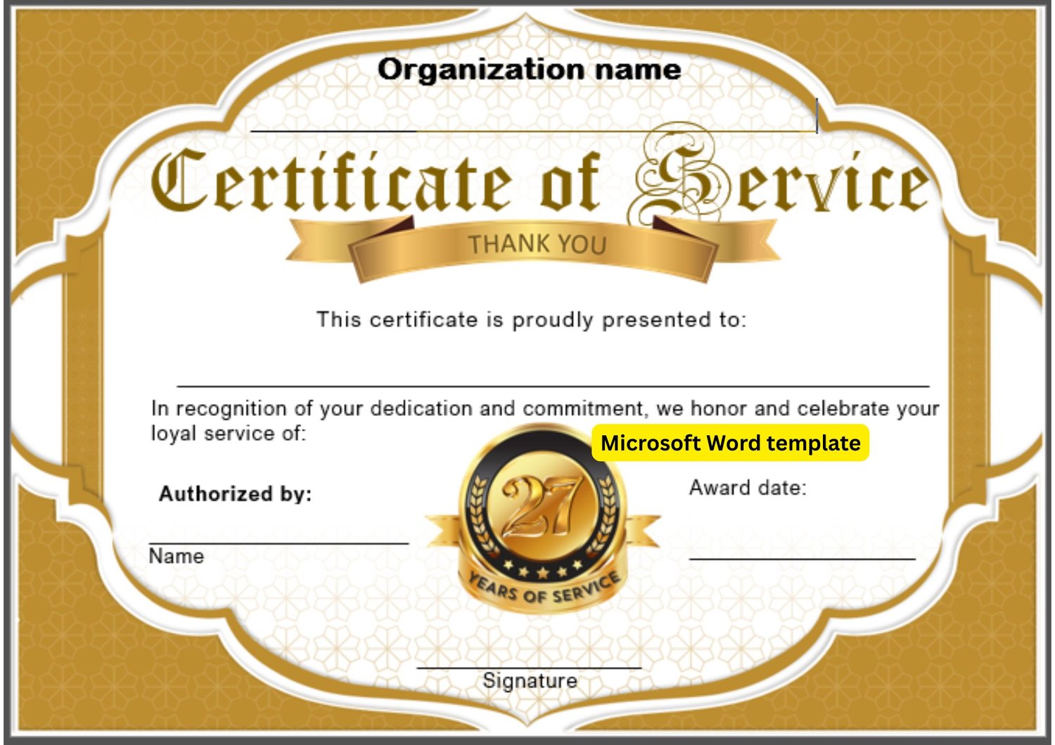 27 Years of Service - Editable Microsoft Word template with logo tailored with number of years G202L270072