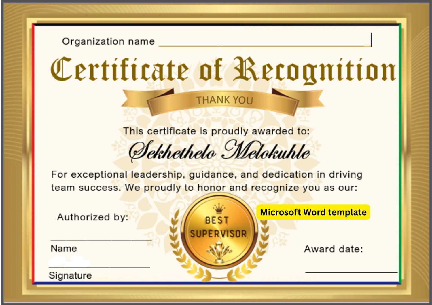 Best Supervisor - Editable Microsoft Word template with customized logo