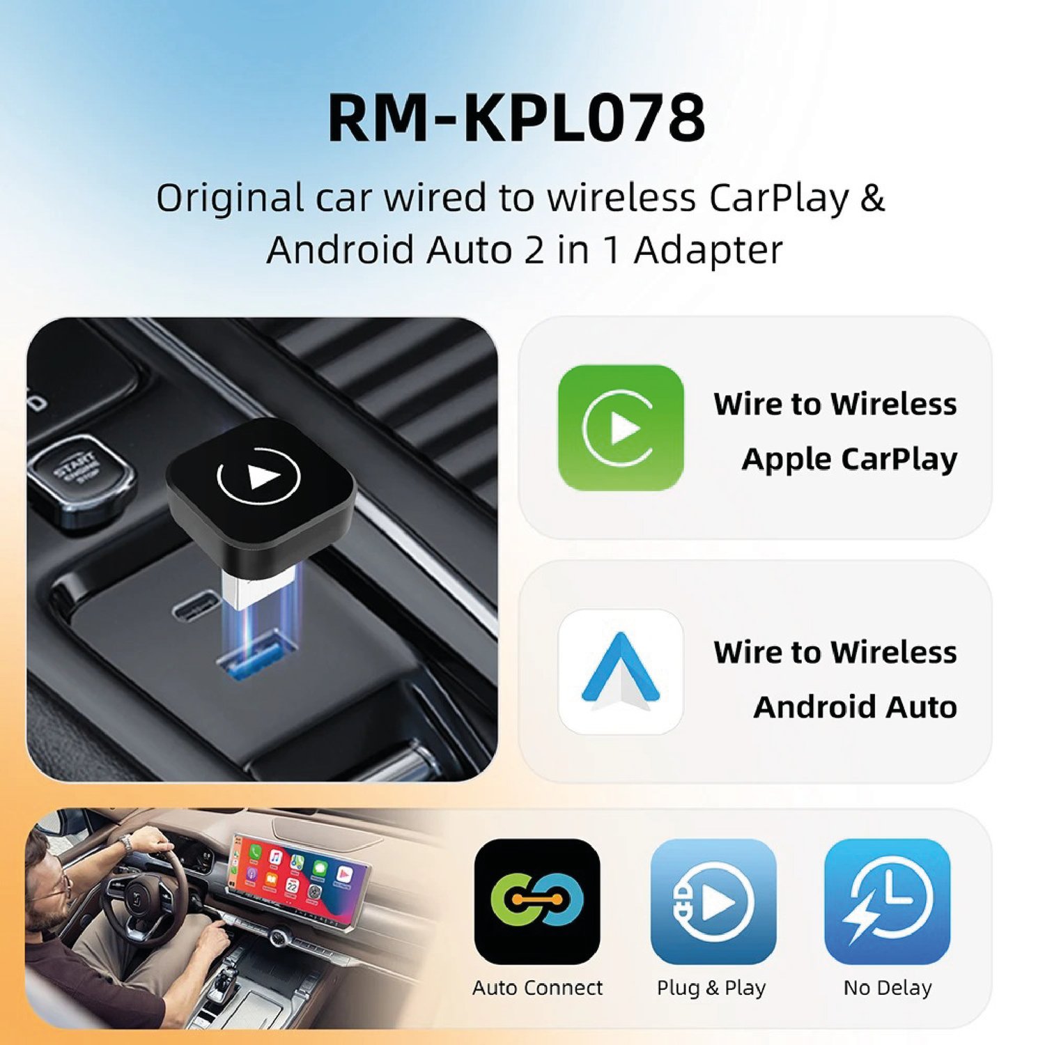 🚗 Wireless CarPlay Android Auto Adapter USB Plug & Play OEM Wired Cars