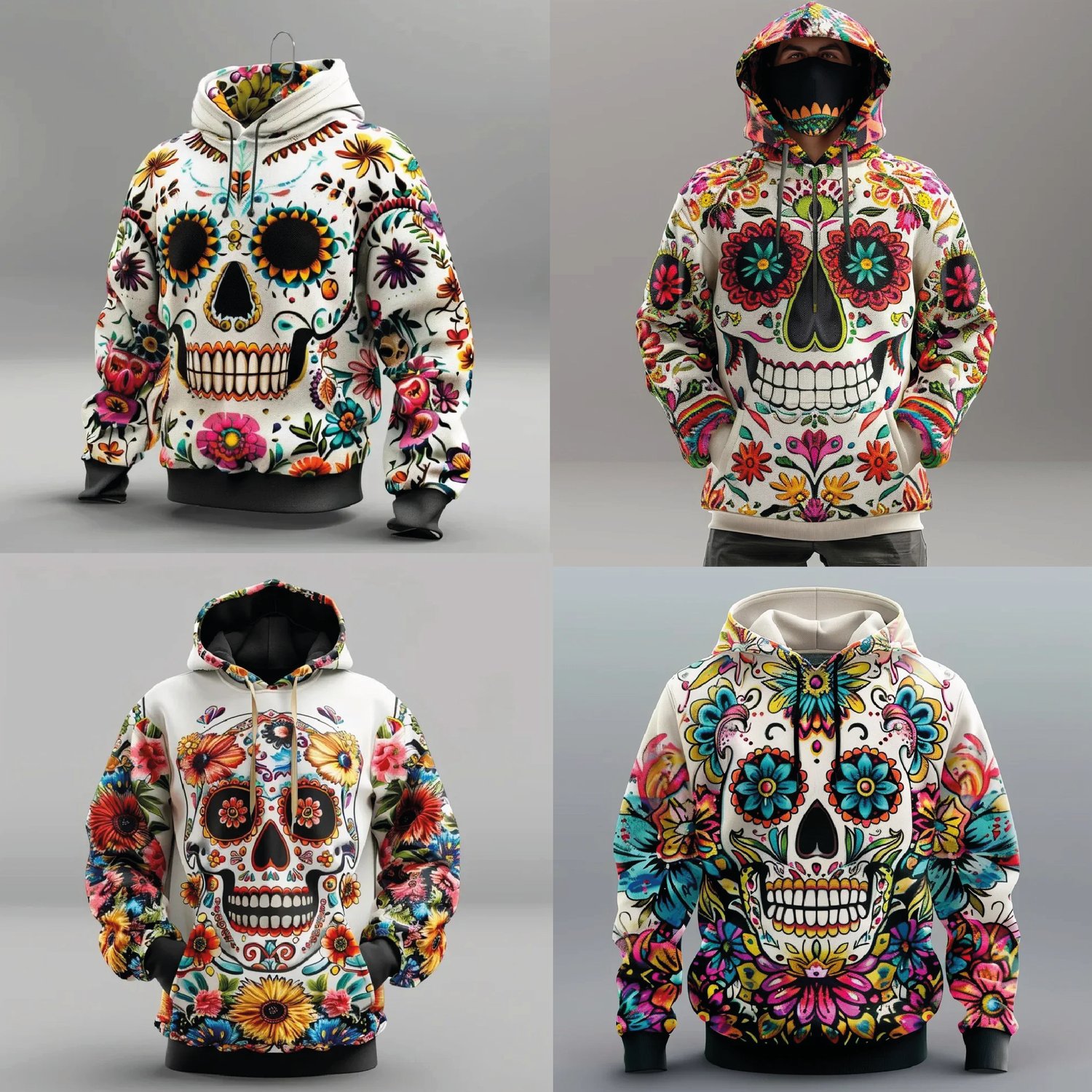 Sweat à capuche 3D style mexicain rétro – Grande taille imprimé crâne coloré