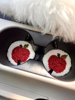 Hand Tufted Car Coasters: Apples (CREAM)