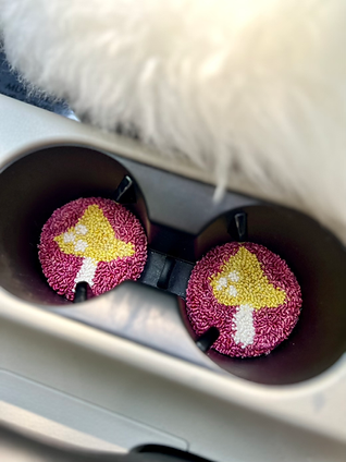 Hand Tufted Car Coasters: Toadstools (PINK)