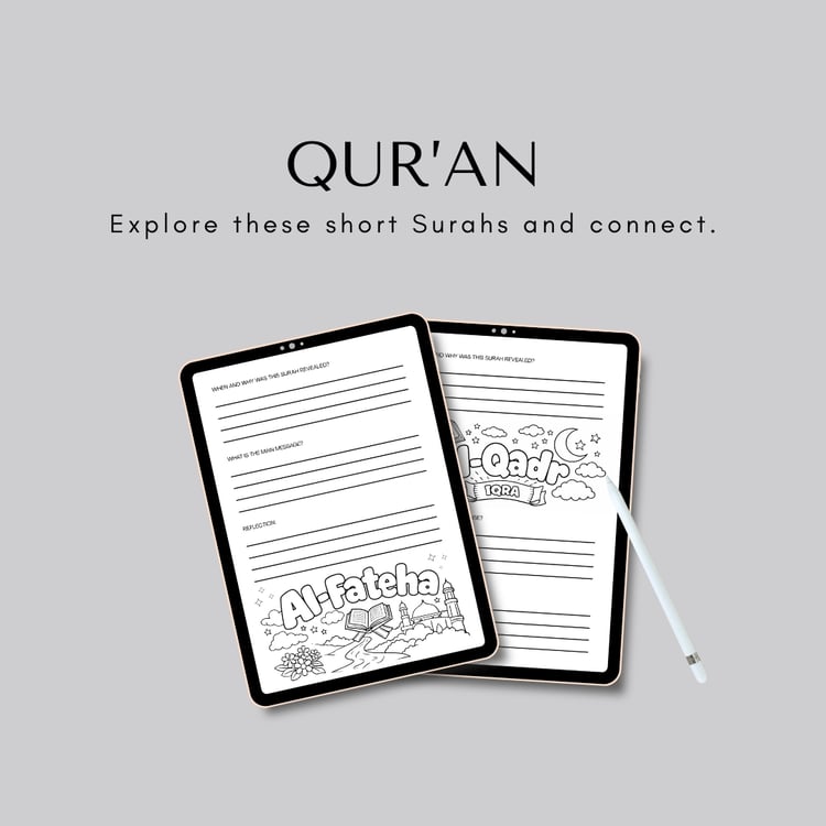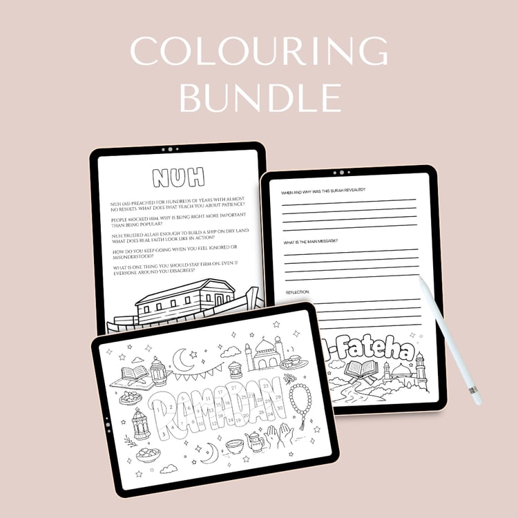 Islamic educational printables and digital products designed for Muslim families. Thoughtfully created colouring sheets, reflection questions, and faith-based activities to help children connect with Islamic history and values in a meaningful way.