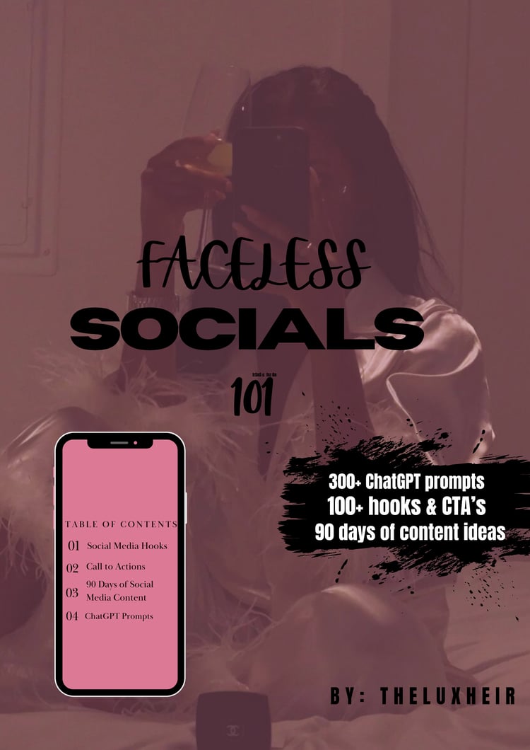 I help women monetize their social media without ever showing their face. Think: scroll-stopping content, faceless brand vibes, and digital products that actually sell. If you’re ready to turn quiet confidence into real cash, you’re in the right place.