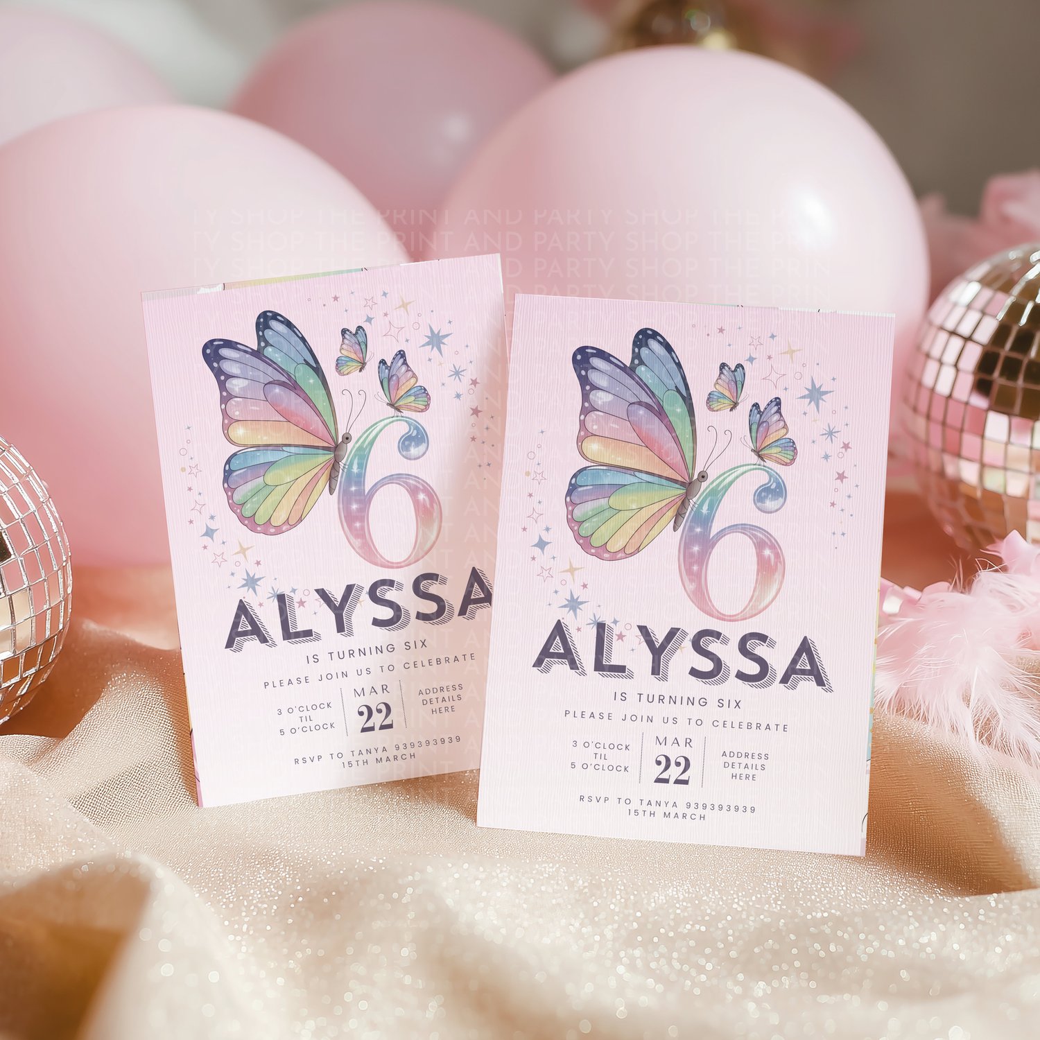 6th birthday butterfly Canva invitation template