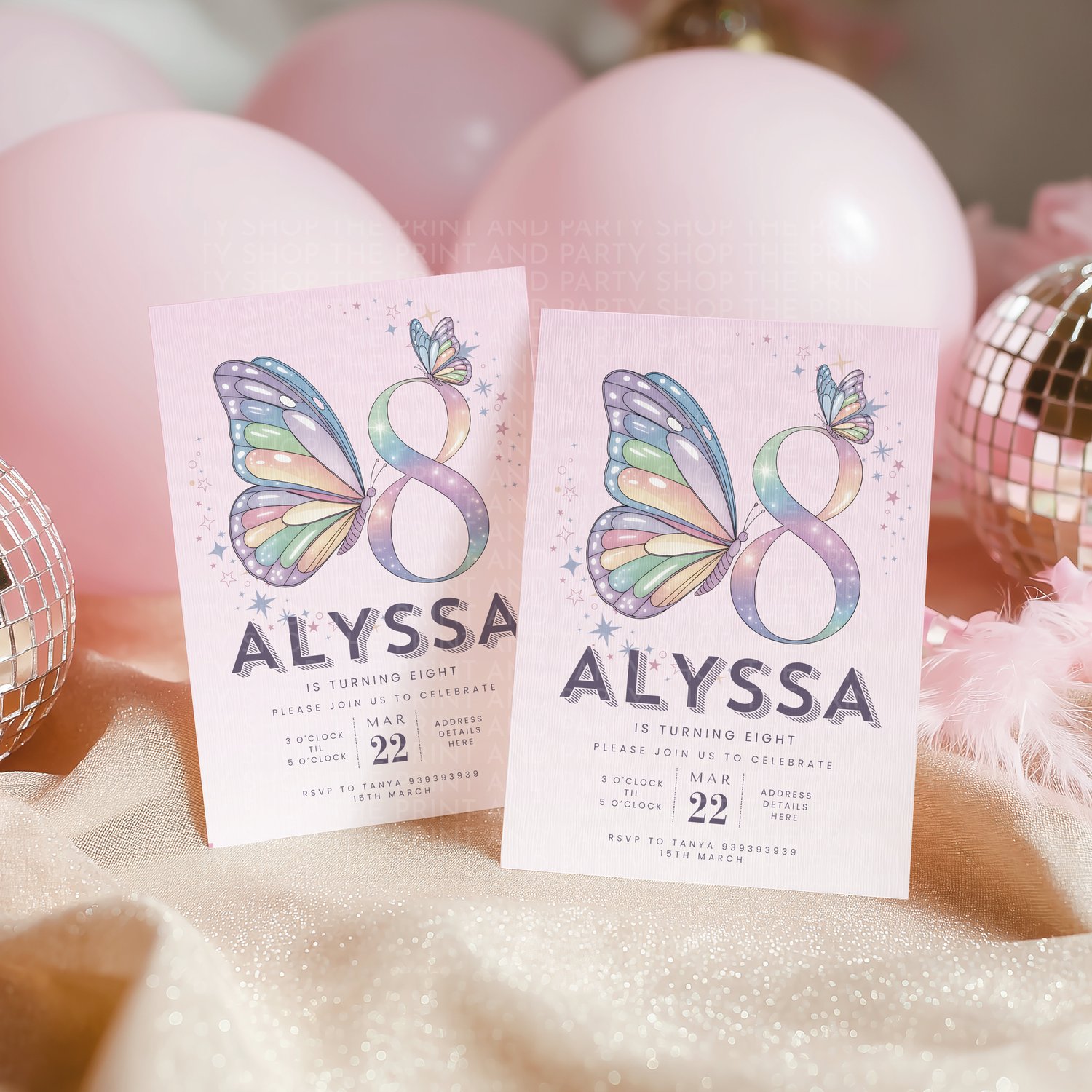 8th birthday butterfly Canva invitation template