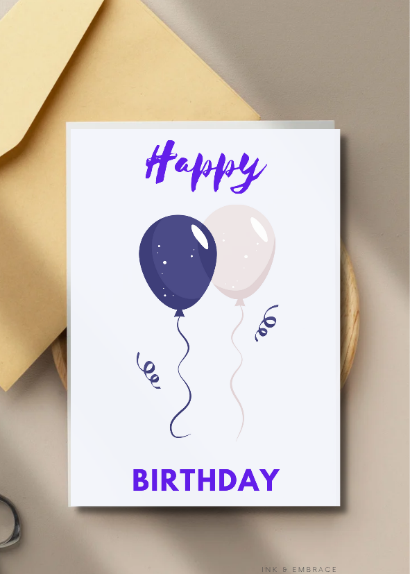 Simple Happy Birthday Card with Balloons – Printable Celebration Card