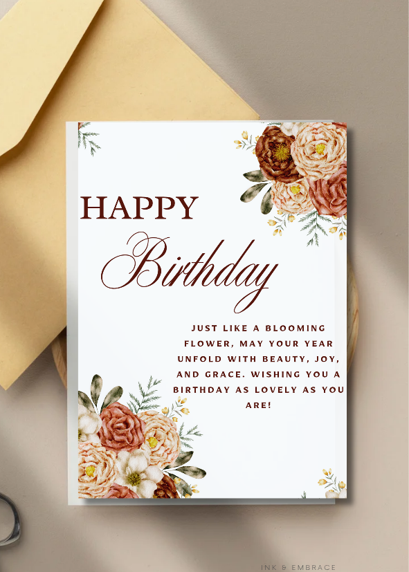 Printable Floral Birthday Card – Elegant Flower Border Card