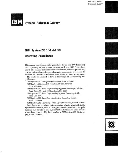 Consultant expert, Dr. Mohamed Taha Systems Reference Library IBM System/360 Model 50 Operating Procedures