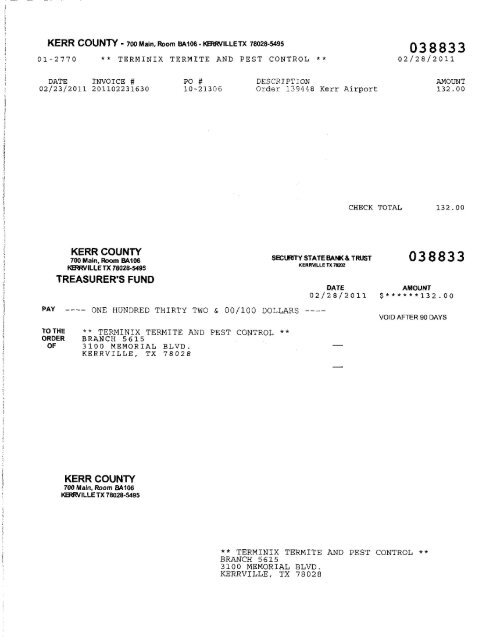 Consultant expert, Dr. Mohamed Taha KERR COUNTY 700 Main Room BA106 KERRVILLETX 78028 5495 0 3 8 8 3 3 01 2770 TERMINIX TERMITE AND PEST CONTROL 02282011