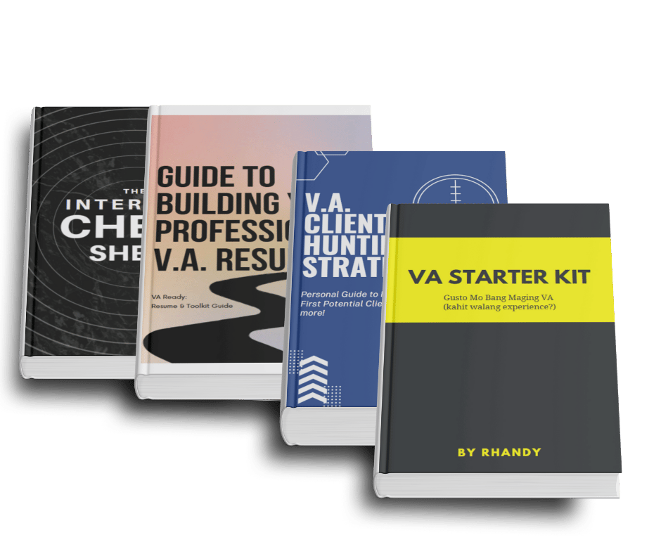 Get instant access to personal client hunting strategies, online profile optimization tips and interview cheat sheets to land clients and build a real VA career — even with zero experience.