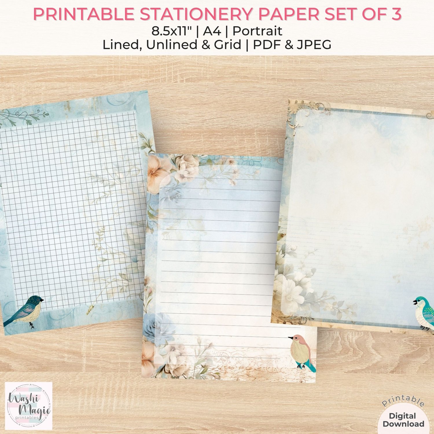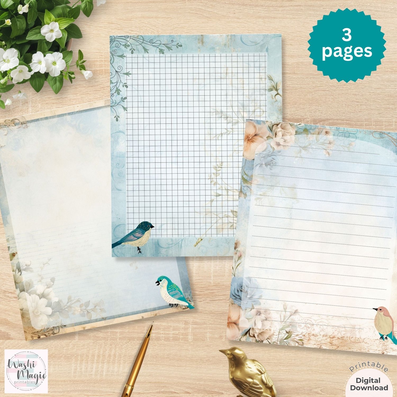 Nostalgic Flower and Bird Printable Stationery: Letter Writing Papers Collection