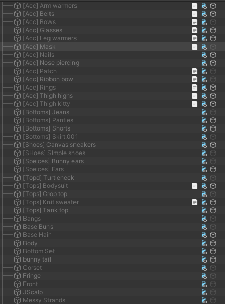 ➜ Accessories: Glasses, Mask, Choker, Thigh highs, Kitty garter, Rings, Nails, Belt